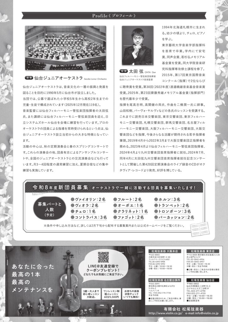 【販売終了】仙台ジュニアオーケストラ 2026 スプリングコンサート