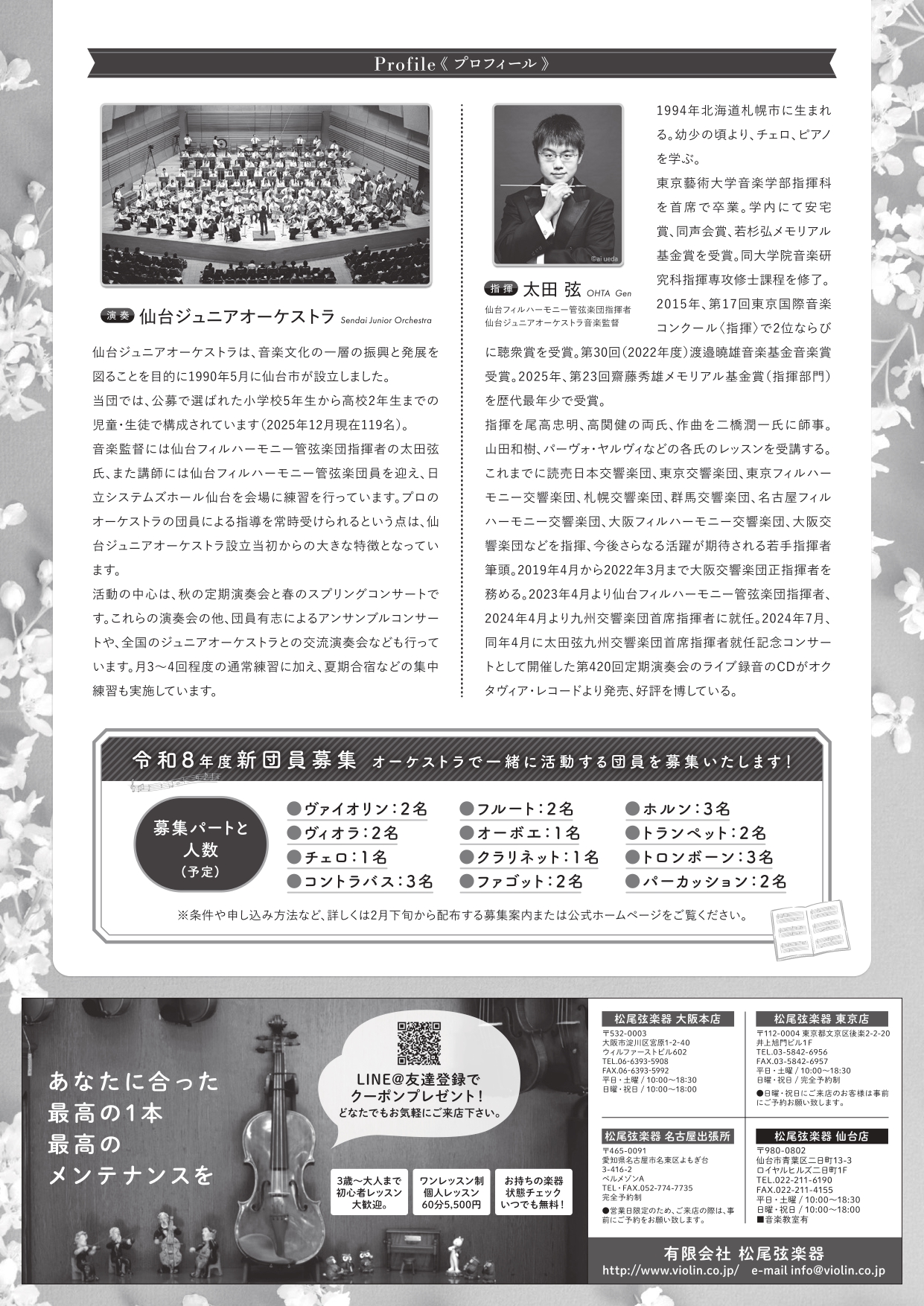 仙台ジュニアオーケストラ音楽監督の太田弦先生と奏でる、若さあふれる演奏にご期待ください!