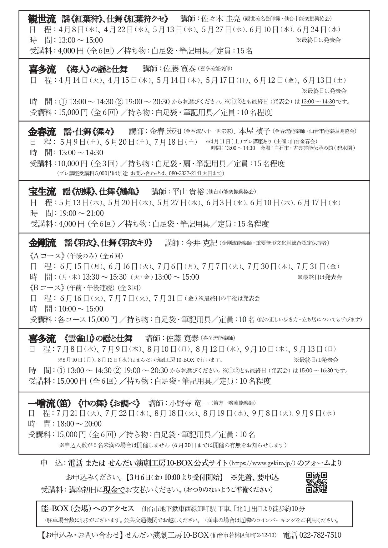 ※ 4月11日 (土曜日) プレ講座あり(主催:仙台金春会)