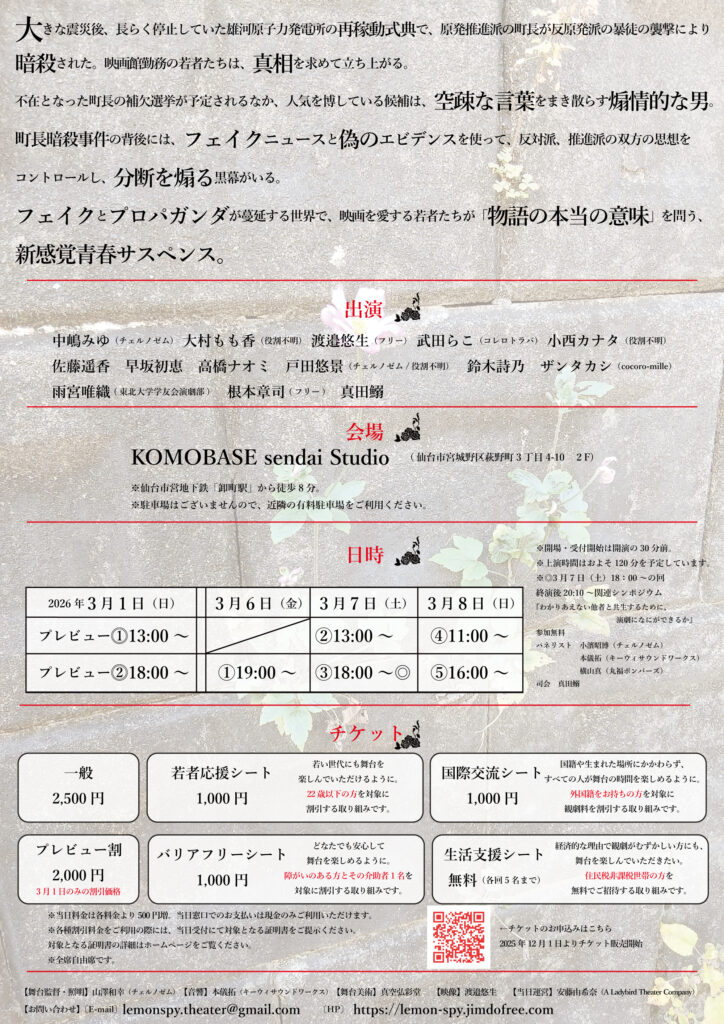 | 会場 | KOMOBASE sendai Studio(仙台市宮城野区萩野町3丁目4-10 2F) |