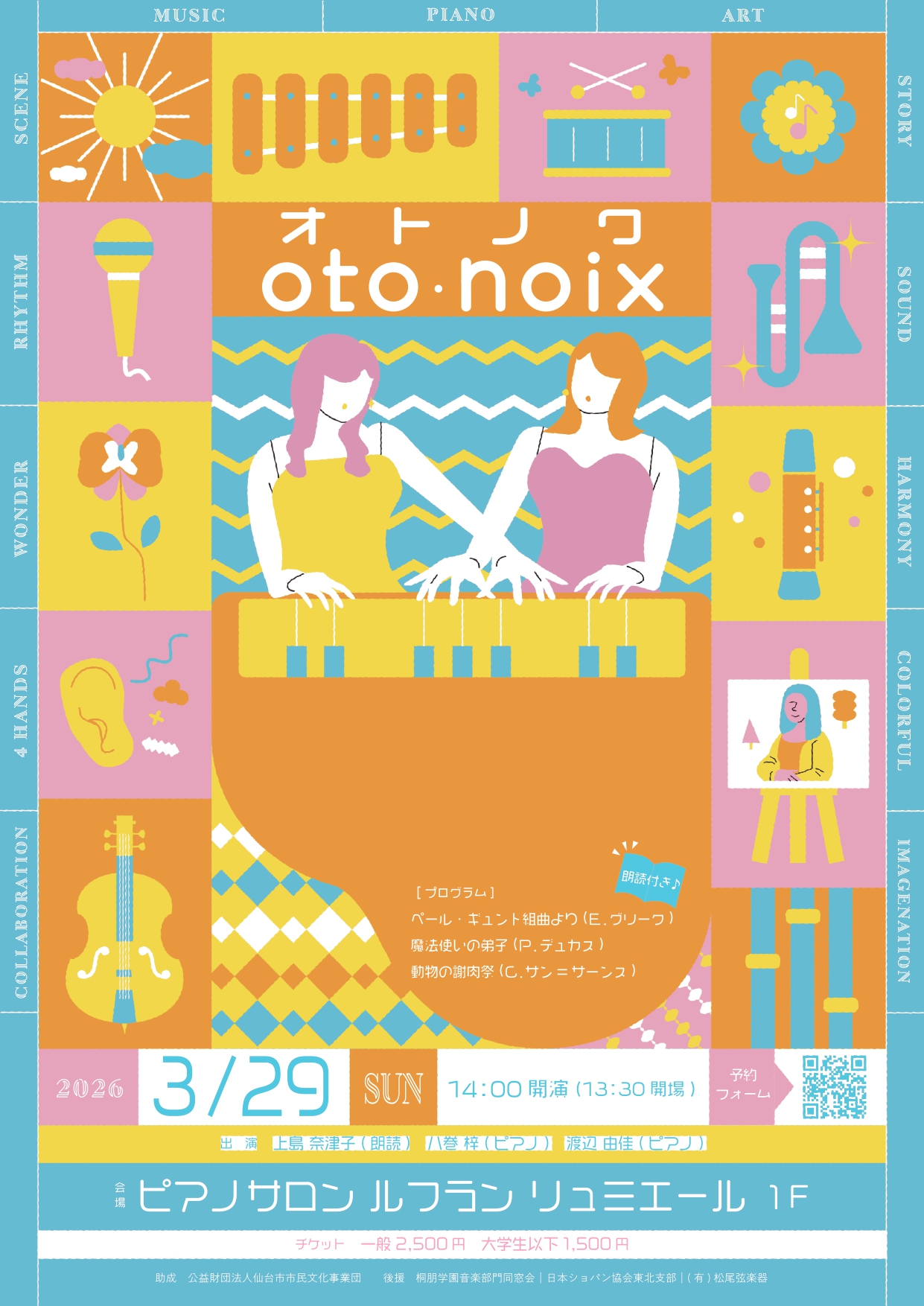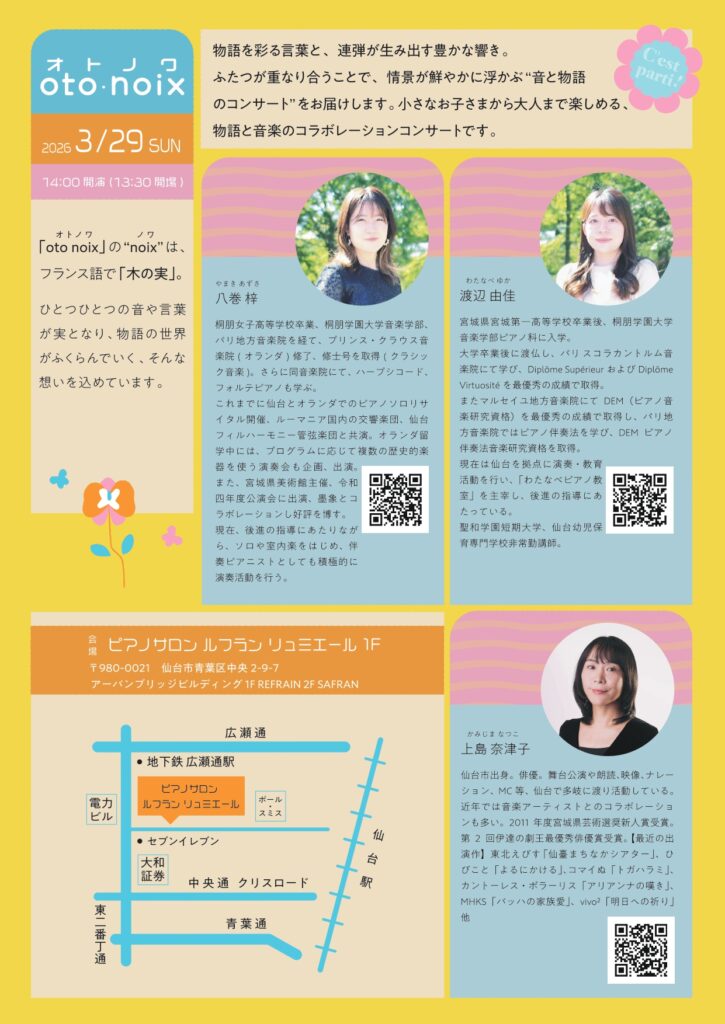 物語を彩る言葉と、連弾が生み出す豊かな響き。ふたつが重なり合うことで、情景が鮮やかに浮かぶ”音と物語のコンサート”をお届けします。小さなお子さまから大人まで楽しめる、物語と音楽のコラボレーションコンサートです。