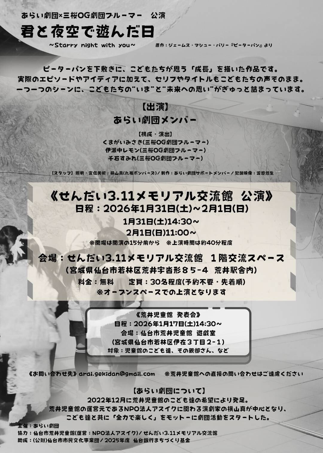 お問い合わせ メール arai.gekidan@gmail.com