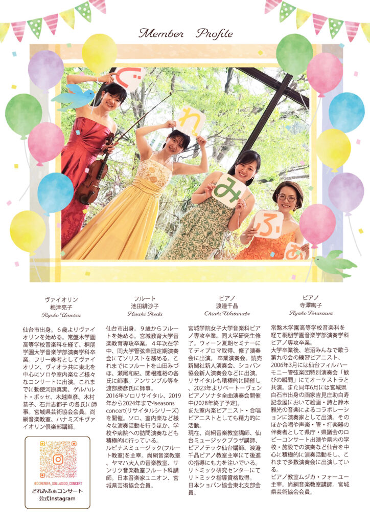 電話 090-4887-9249(渡辺) メール doremifunfunmusic@gmail.com |